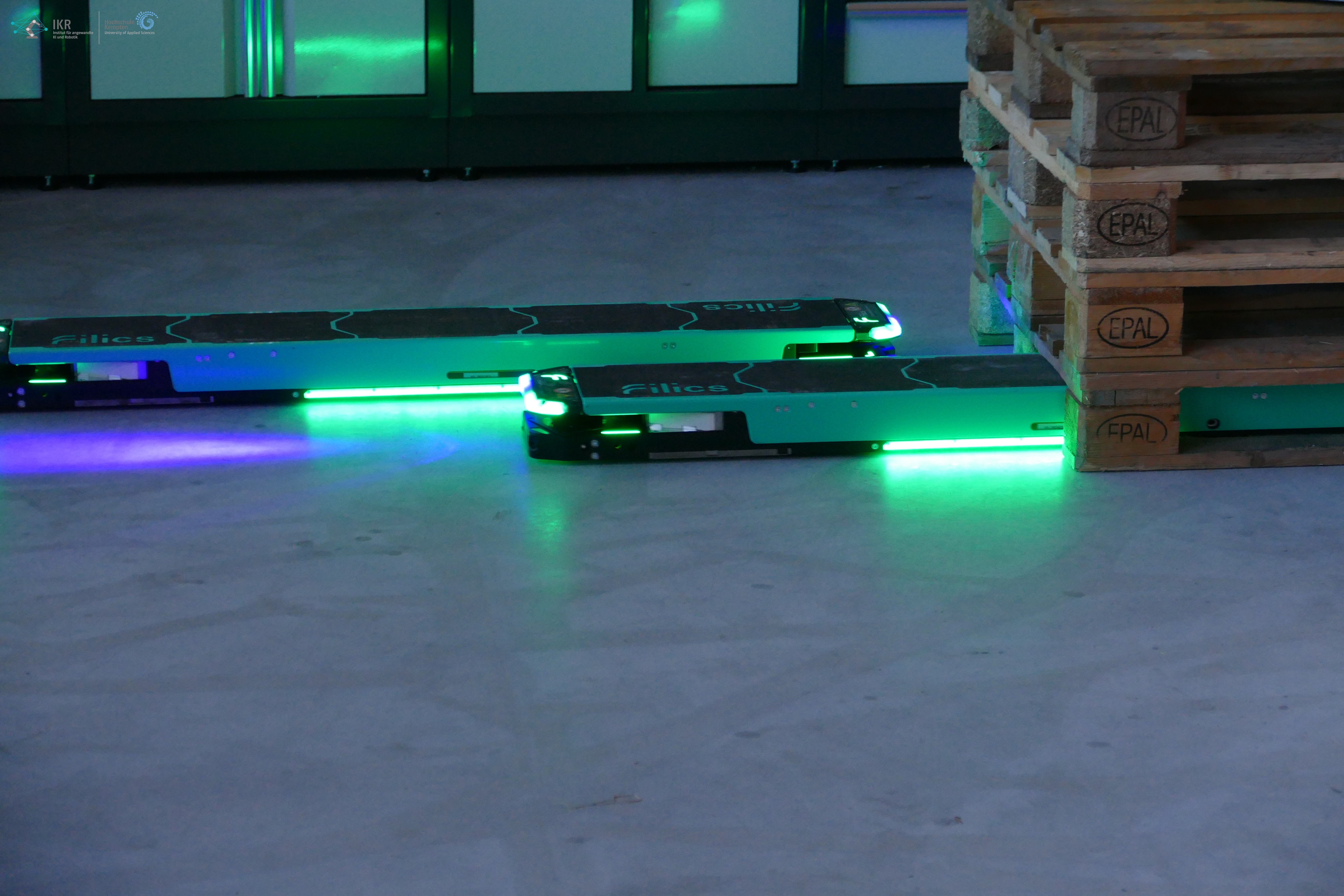 Mehr als 100 Gäste folgten vergangenen Donnerstag der Einladung zur Robo-Night im Institut für angewandte KI und Robotik (IKR). Im Mittelpunkt des Abends stand das Thema Robotik in der Logistik – mit einem besonderen Highlight: Die Firma Filics präsentierte ihre innovativen, autonom fahrenden Kufen, die vor allem für den Bereich Palettentransport ein echtes Novum sind und ihren Einsatz finden.