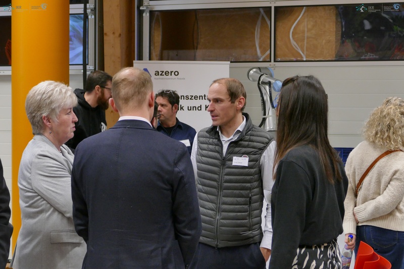 Ein weiteres Highlight kam vom IKR: Der 30 Kilogramm schwere humanoide Roboter „Karl“, von den wissenschaftlichen Mitarbeitern auf diesen Namen getauft, demonstrierte eindrucksvoll seine Fähigkeiten – vom Winken bis zum eigenständigen Laufen durch den Raum. Neben Filics waren auch die azero GmbH sowie Jugard & Künstner vor Ort und stellten ihre Robotiklösungen vor. Bayern Innovativ stellte das Mechatronik Cluster vor und stand als Ansprechpartner bereit, um Unternehmen zu passenden Förderprogrammen zu beraten.