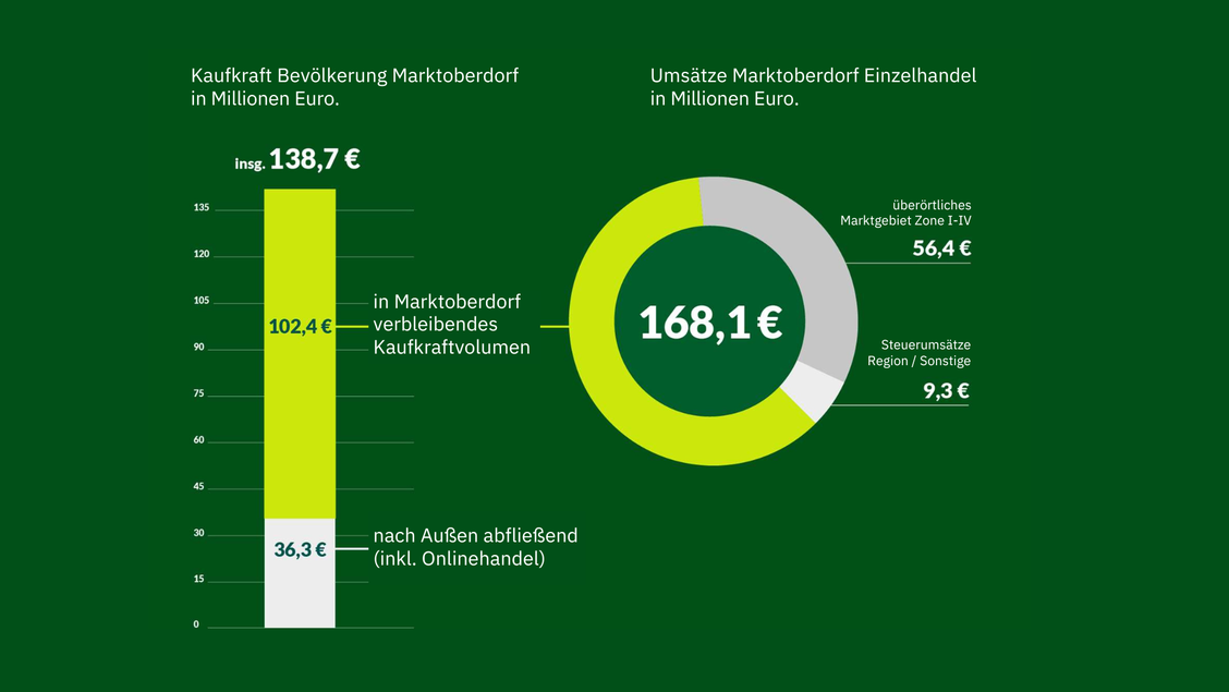 Marktoberdorf erreicht hohe Zentralitätswerte und bietet damit beste Voraussetzungen für vielfältige Geschäftsfelder. Die Kernzielgruppe der 25- bis 59-Jährigen investiert durchschnittlich rund 3.000 Euro jährlich im lokalen Einzelhandel. Das mittlere verfügbare Jahreseinkommen der Käuferschaft liegt bei etwa 45.000 Euro brutto.